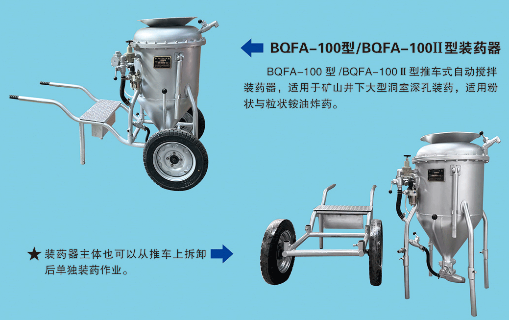 BQFA型自動攪拌系列裝藥器,我公司最新研發并已生產全面推廣市場,已獲得國家發明專利。手動攪拌裝藥器歷經30余年,現打破傳統產品觀念,讓習慣改變,迎合市場需求,打造更安全便捷的礦用機械設備。突破創新,奮力實現自動化礦山,致力滿足各大礦山需求,在繁榮昌盛的道路上繼續前行。
