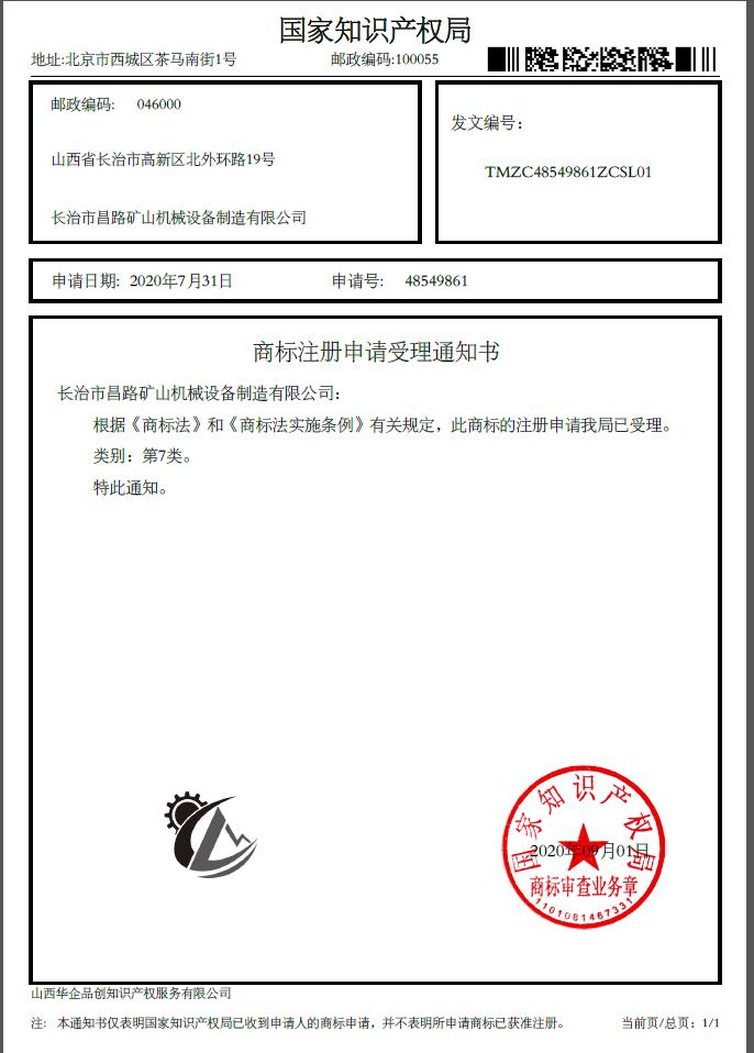 商標(biāo)注冊(cè)申請(qǐng)受理通知書(shū)