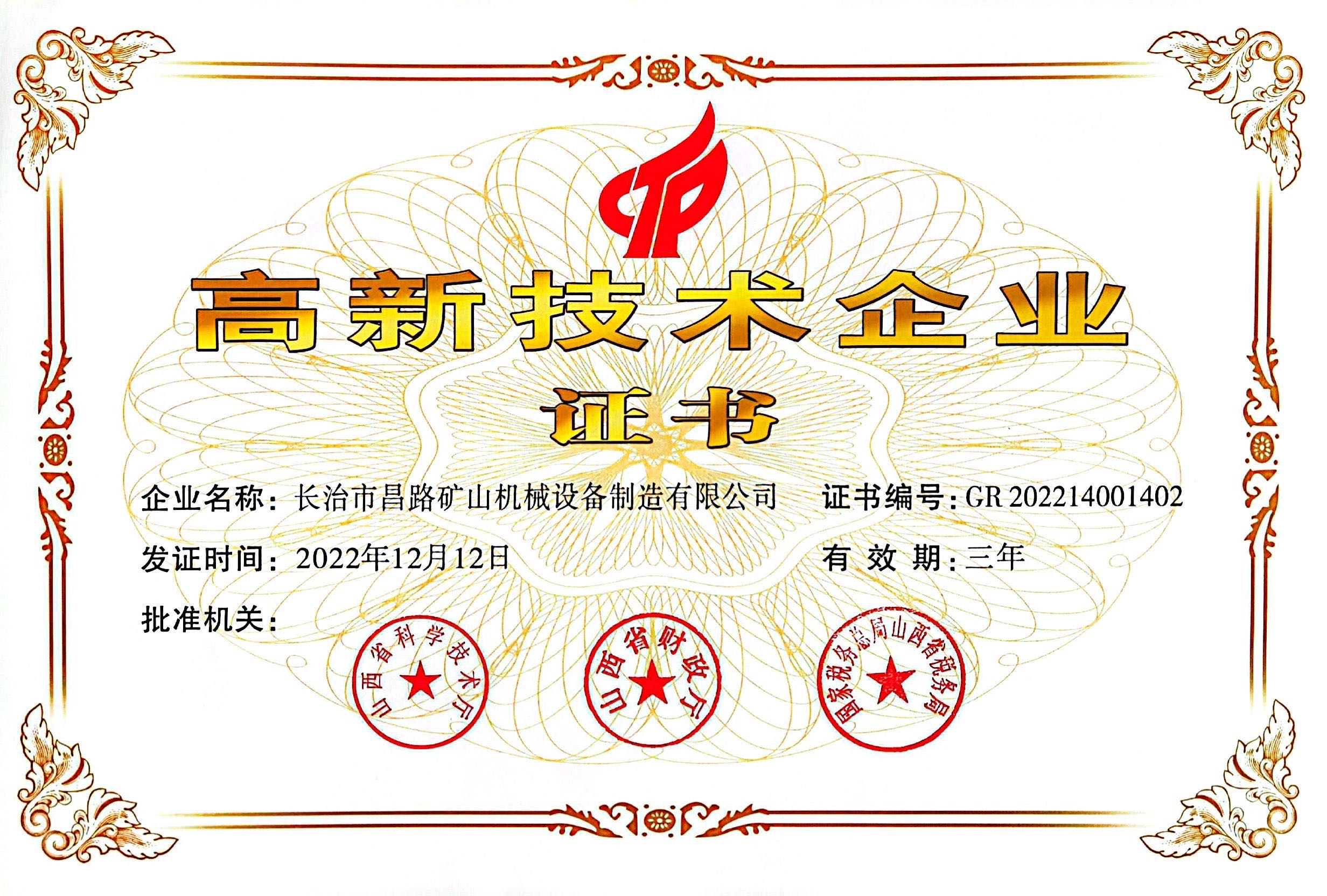 高新技術企業證書